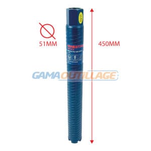 La carottage est généralement équipée d’une mèche creuse en acier durci, munie de dents ou de diamants à l’extrémité. Elle est attachée à un foret rotatif qui est utilisé pour percer le matériau cible. Lorsque la carotteuse pénètre dans le sol, la carotte de matériau est extraite et récupérée pour analyse ultérieure.