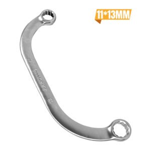 CLE DEMI LUNE 11*13 TOPTUL, Cette clé polygonale demi-lune est un outil à main conçu pour serrer et desserrer des écrous et des boulons, en particulier dans des zones difficiles d’accès. Sa forme en demi-lune spécifique permet d’atteindre des fixations qui seraient inaccessibles avec une clé polygonale standard.