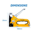 Agrafeuse manuelle tout acier Tolsen 43020, idéale pour agrafes de 4 à 14mm. Dotée d’un réglage de puissance et livrée avec 500 agrafes.