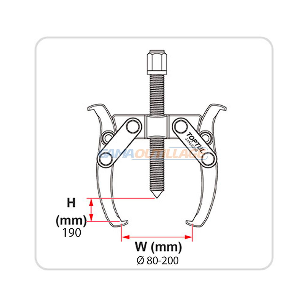 ARRACHE ROULEMENT 2 BRAS 2*200MM TOPTUL, un outil essentiel pour retirer des pièces telles que les engrenages, les roulements et les poulies des arbres et des moyeux. Il fonctionne en appliquant une force de traction ciblée sur la pièce à retirer, la délogeant de son logement.