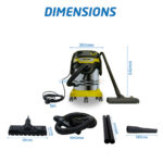 Son moteur 1200W, sa cuve inox 25 litres, son système de nettoyage de filtre intégré, sa fonction soufflerie, et son flexible robuste offrent une puissance d’aspiration très élevée pour les gros débris, la poussière fine et les liquides.