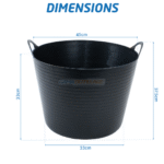 Auge plastique noire 42 L avec poignées renforcées, fabrication locale, idéale pour transporter ou mélanger matériaux sur chantier ou en bricolage.