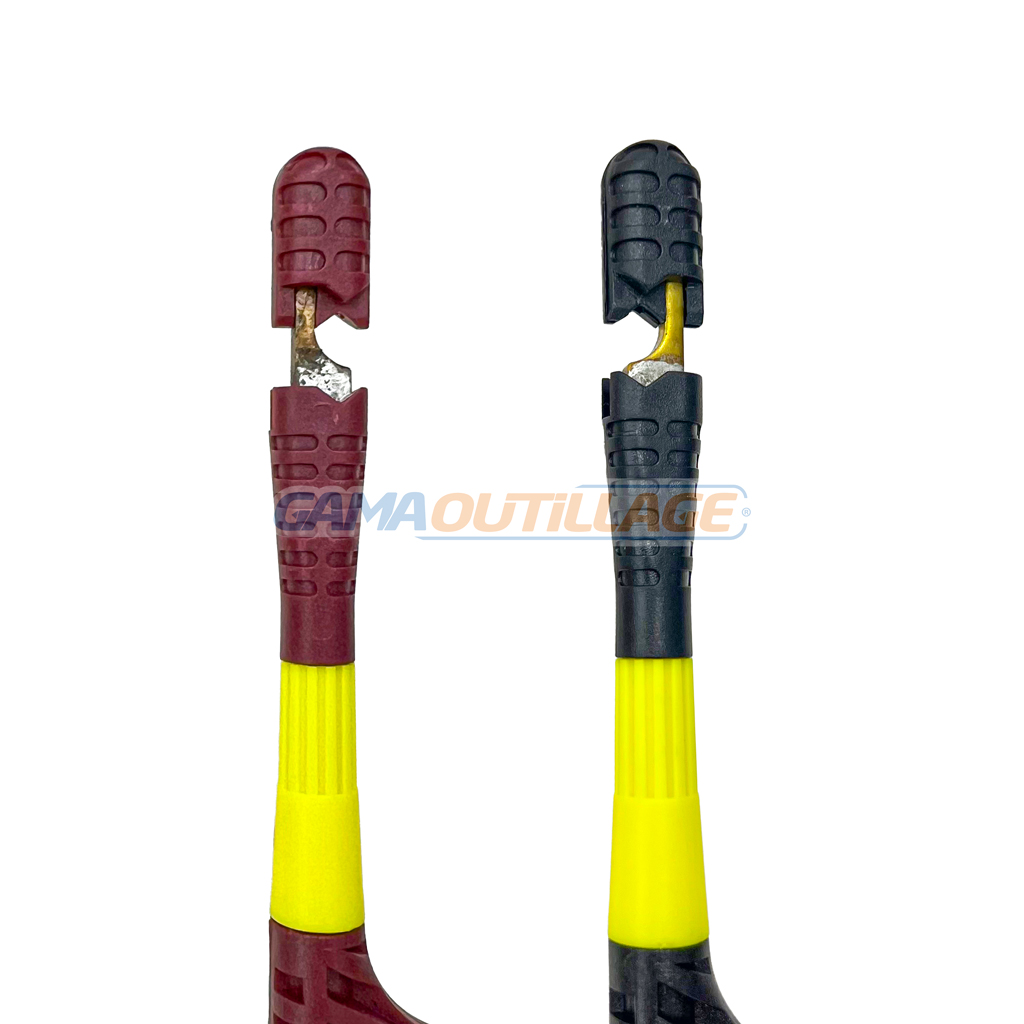 - Perce les isolants sur les fils en poussant la barre, minimisant les risques d’oxydation