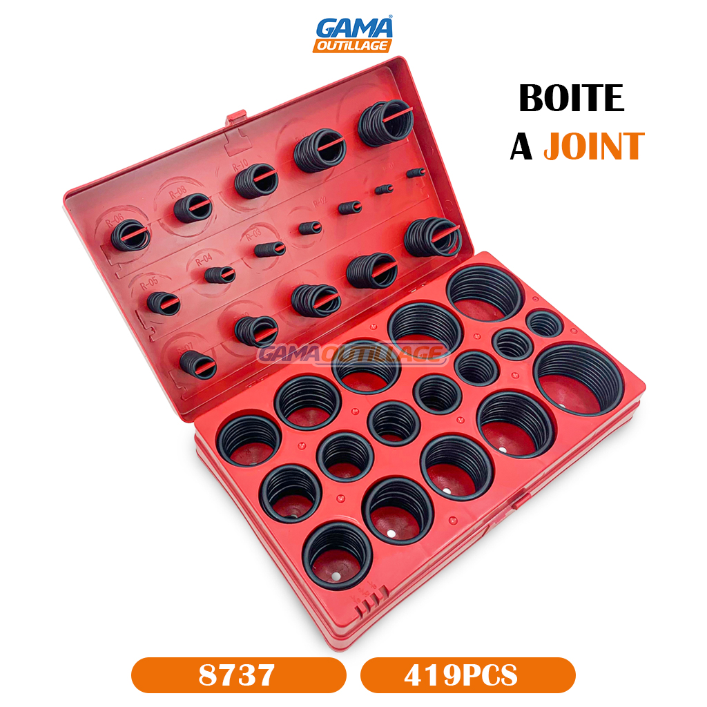 GAMAOUTILLAGE vous propose une BOITE A JOINT 419PCS TA, est une joints toriques en caoutchouc sont couramment utilisés dans les applications automobiles pour assurer l’étanchéité entre deux surfaces. Ils sont fabriqués en caoutchouc nitrile (NBR), un matériau connu pour sa résistance à l’huile, à la graisse, au carburant et aux produits chimiques. Les joints toriques en NBR sont également résistants à l’usure et à l’abrasion, ce qui les rend idéaux pour une utilisation dans des environnements difficiles.
