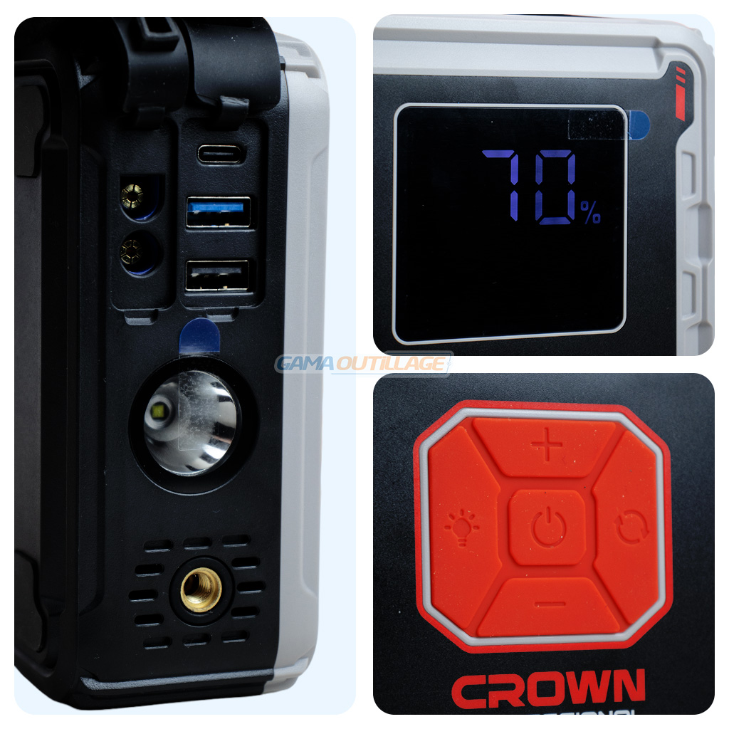 BOOSTER BATTERIE AUTONOME AVEC GONFLEUR 24000MH CROWN