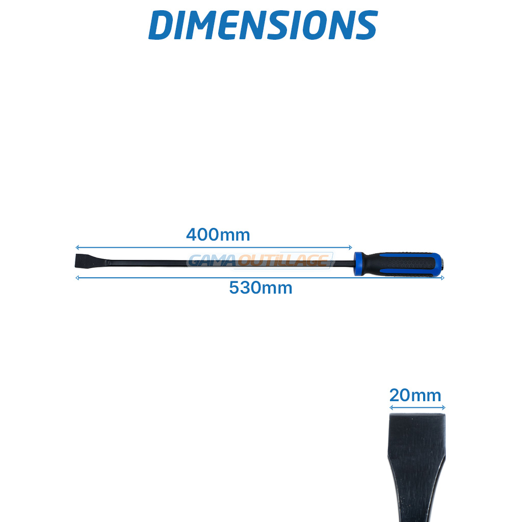 Doté d’un manche ergonomique bi-matière antidérapant avec embout métallique renforcé, ce levier assure une prise en main confortable et un excellent contrôle lors des interventions en atelier.