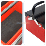 Elle est équipée d’une poignée métallique centrale et de deux loquets latéraux qui assurent une ouverture fluide et un accès rapide à vos outils. Ses dimensions de 340 x 203 x 156 mm lui confèrent un bon volume sans encombrement.