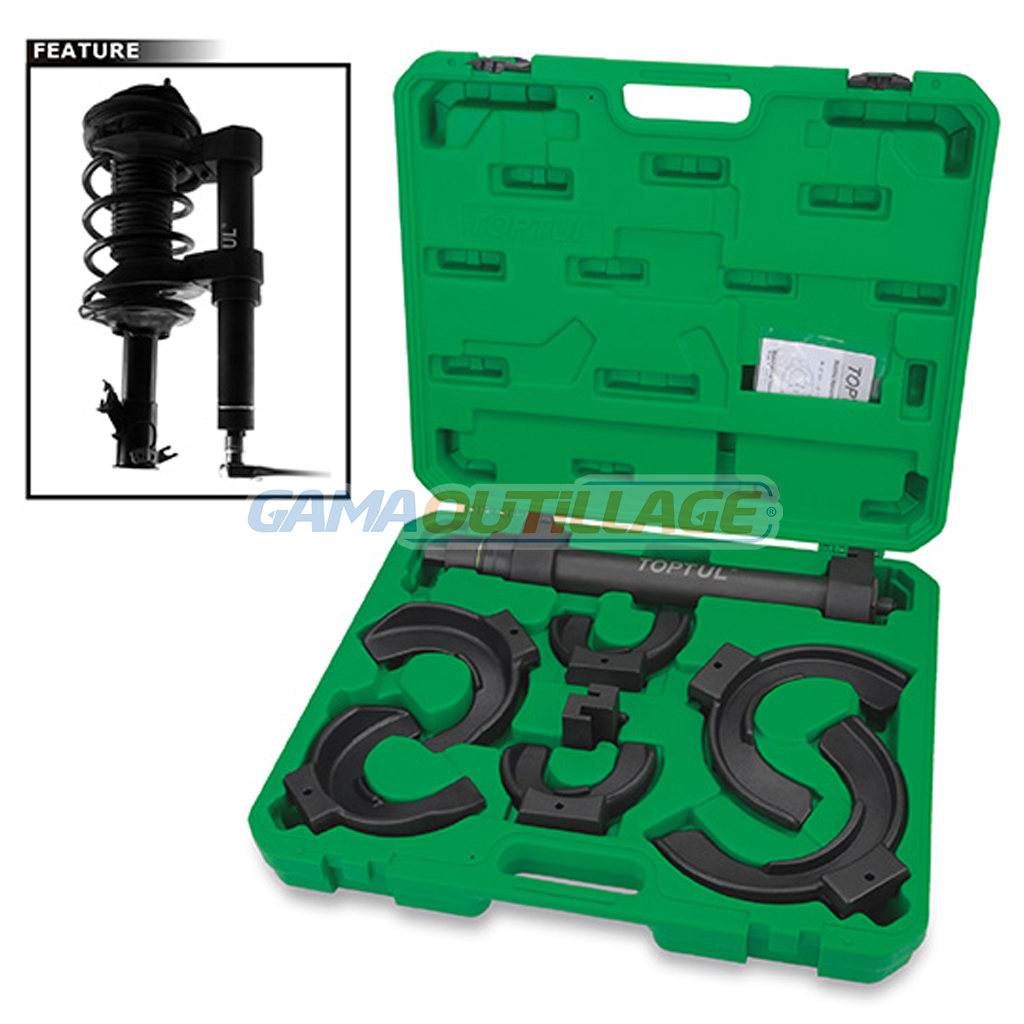 GAMAOUTILLAGE vous propose une CAISSE ARRACHE AMORTISSEUR 08PCS TOPTUL, est un ensemble d’outils conçu pour le montage et le démontage des ressorts d’amortisseurs sur les suspensions MacPherson.