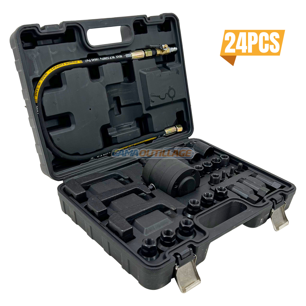 CAISSE ARRACHE INJECTEUR PNEUMATIQUE 24PCS DNM, est un ensemble d’outils spécialisés conçus pour retirer les injecteurs diesel des moteurs, en particulier ceux équipés de systèmes à rampe commune.