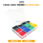 CAISSE GAINE THERMO RECTRACTABLE 530PCS, est un tube en plastique qui se rétracte fortement lorsqu’il est exposé à une source de chaleur (comme un pistolet à air chaud).