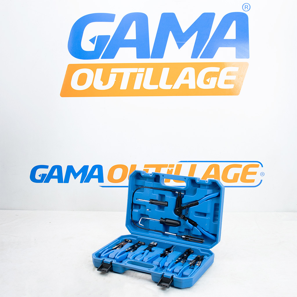 Le Coffret pinces pour colliers Dynamo référence 5439-7 est un kit complet de 9 outils professionnels indispensables pour la maintenance des systèmes de refroidissement et de carburant. Ce kit pinces durites permet d’accéder facilement aux colliers de serrage situés dans les endroits les plus exigus du moteur grâce à sa pince à câble flexible. Chaque outil de cet outillage colliers serrage est conçu pour manipuler avec précision différents types de fixations (Clic-R, plats, à ressort) sans endommager les durites, assurant ainsi une efficacité maximale lors des réparations automobiles.