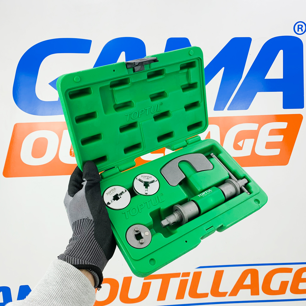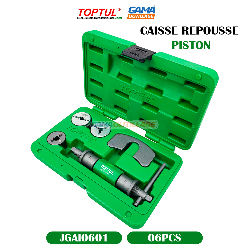GAMAOUTILLAGE vous propose une CAISSE REPOUSSE PISTON 6PCS TOPTUL, est un ensemble d’outils conçu pour rétracter les pistons d’étrier de frein lors de l’entretien ou du remplacement des plaquettes de frein.