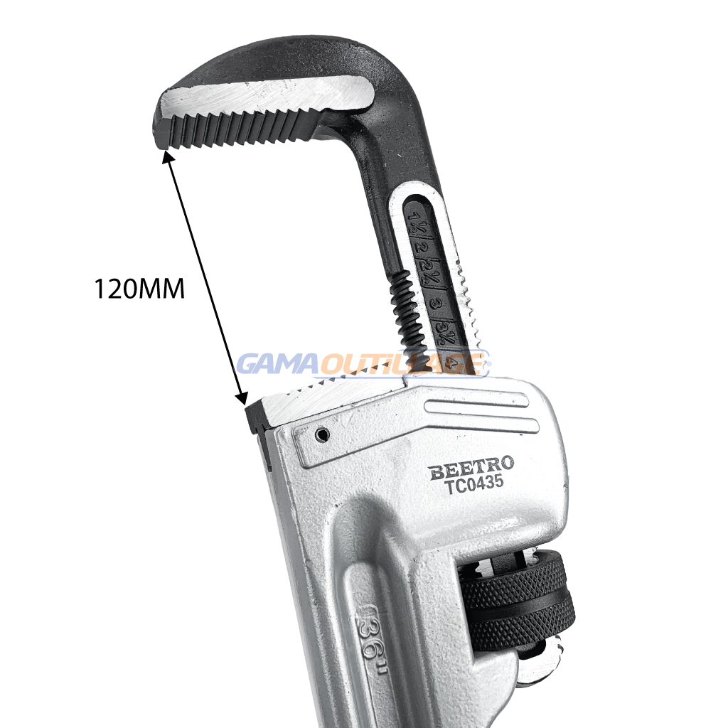 GAMAOUTILLAGE vous propose une est CLE A GRIFFE ALUMINUIM 36″ BEETRO, un outil de bricolage indispensable pour serrer et desserrer des vis et des boulons de grande taille. Elle est fabriquée en aluminium, un matériau léger et résistant, qui la rend facile à manier.