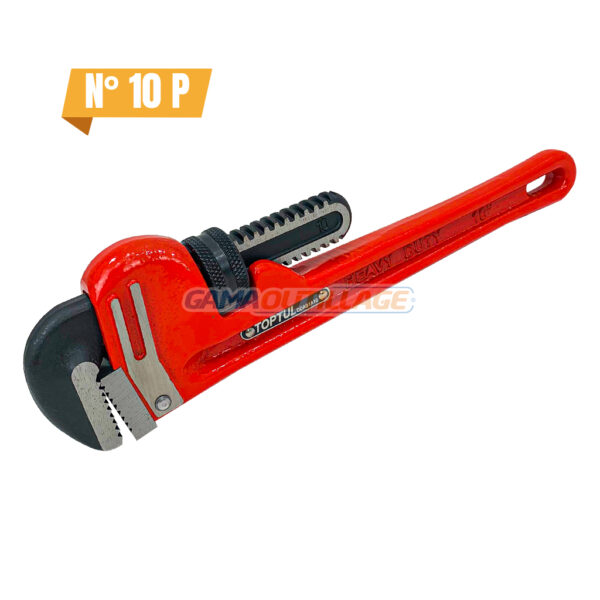 CLE A GRIFFE N° 10 TOPTUL, un outil de bricolage indispensable pour serrer et desserrer des vis et des boulons de grande taille. Elle est fabriquée en acier au chrome-molybdène forgé avec manche en fonte, un matériau léger et résistant, qui la rend facile à manier.