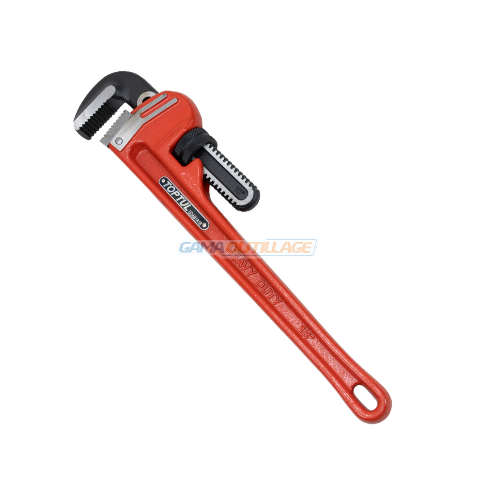 Clé à griffe N°18 TOPTUL avec mâchoire auto-serrante, longue de 49 cm, conçue pour travaux intensifs de plomberie et maintenance.