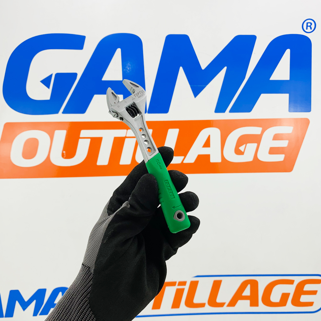 GAMAOUTILLAGE vous propose une CLE A MOLETTE 150MM GAINEE TOPTUL, est un outil manuel polyvalent utilisé pour serrer ou desserrer des écrous et des boulons de différentes tailles. Elle est caractérisée par ses mâchoires ajustables qui lui permettent de s’adapter à une large gamme de dimensions.