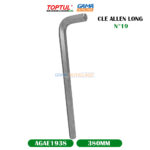 CLE ALLEN LONG N°19 TOPTUL, est un outil spécialement conçu pour serrer ou desserrer des vis à six pans creux (vis Allen) dont la taille est de 19 mm. Le terme “longue” indique que la partie hexagonale.