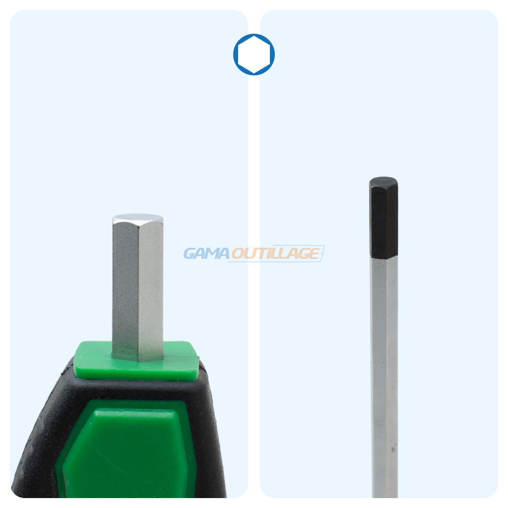 - Extrémité droite pour un engagement précis dans la vis