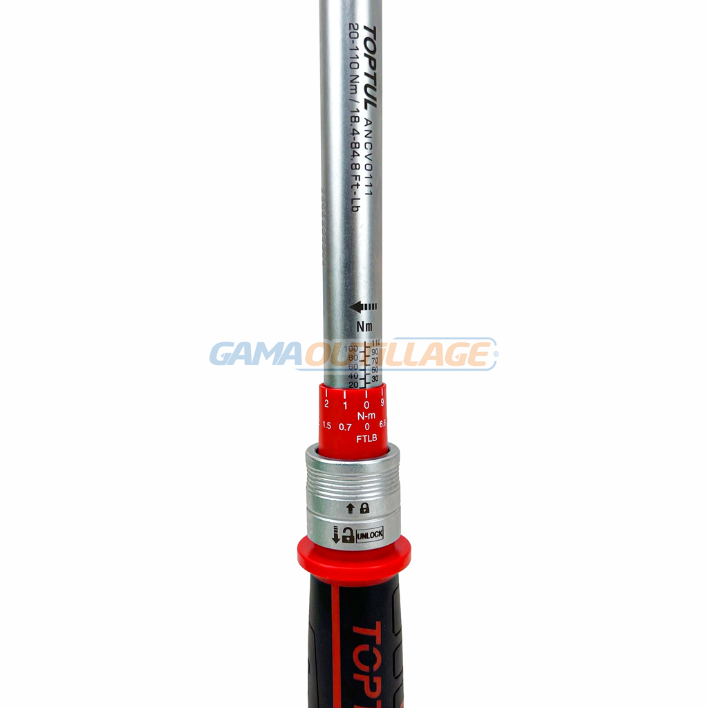 GAMAOUTILLAGE vous propose une CLE DYNAMOMETRIQUE 1/2 20-110NM 08PCS TOPTUL, est un ensemble d’outils conçu pour appliquer un couple de serrage précis aux boulons et aux écrous. cette outil de précision utilisé pour serrer les écrous et les boulons avec un couple spécifique.