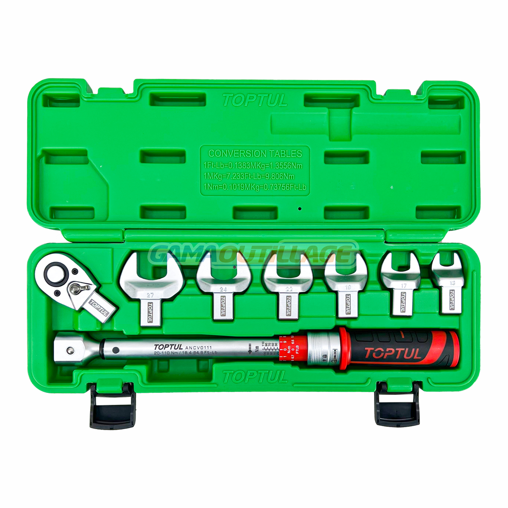 CAISSE CLE DYNAMOMETRIQUE A FOURCHE 1/2″ 20-110NM 08PCS TOPTUL