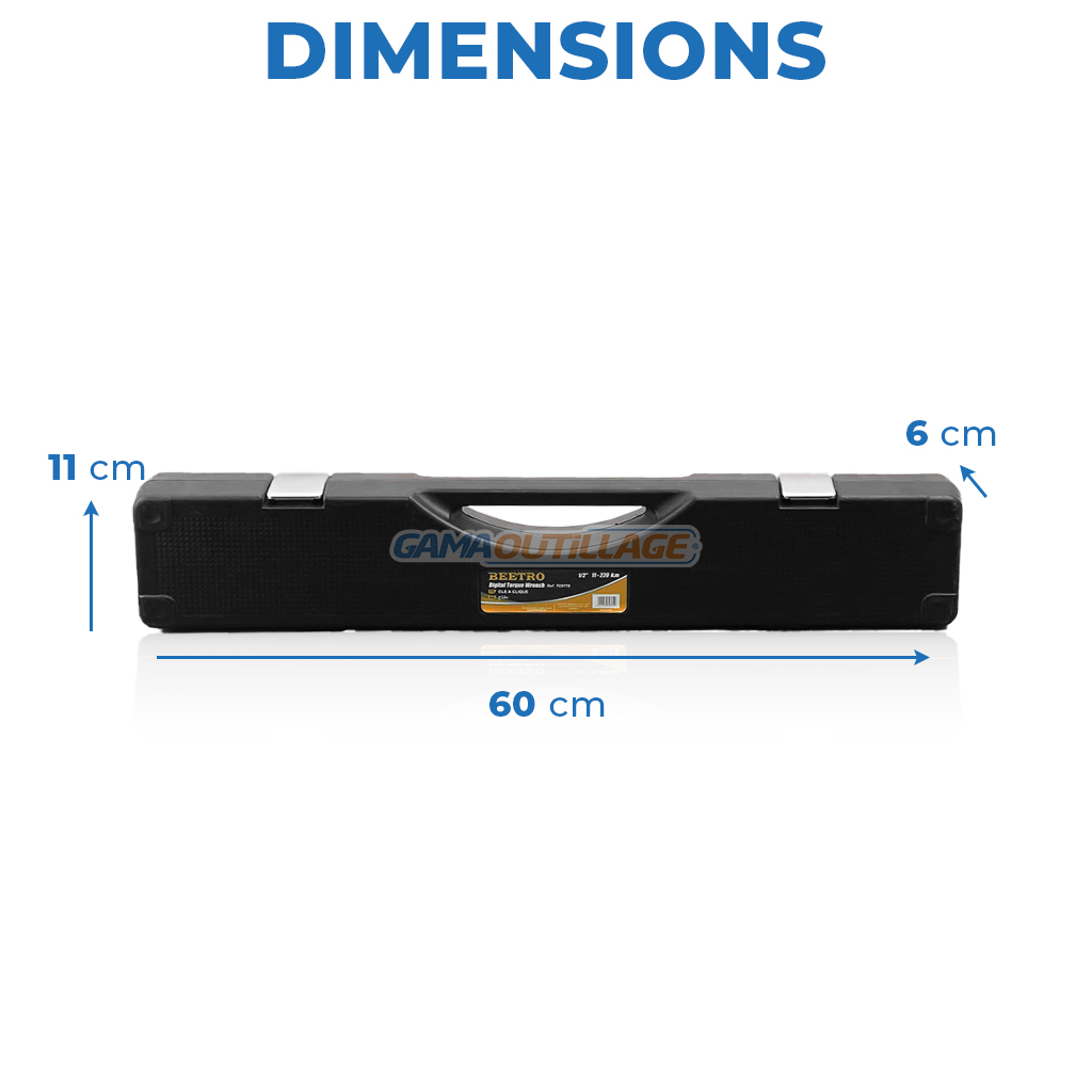 Clé dynamométrique digitale 1/2 BEETRO TC0775 (11-220 N.m) avec écran, mémoire et sélecteur d’unités. Longueur 53 cm. Précision professionnelle pour ateliers et industrie.