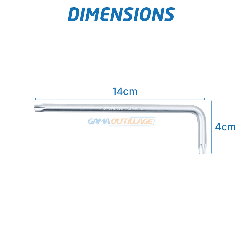 Fabriquée en acier traité avec une finition satinée, cette clé Torx offre une bonne résistance à l’usure et une longue durée d’utilisation. Les deux extrémités Torx permettent une utilisation polyvalente selon la profondeur et l’accessibilité de la vis.
