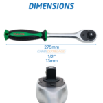 Il est équipé d’un mécanisme à cliquet réversible avec bouton de déverrouillage rapide, facilitant le changement des douilles.