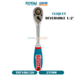 CLIQUET REVERSIBLE 1/2″ TOTAL, Poignée à cliquet réversible avec dégagement rapide, Le cliquet 1/2″ Poignée Plastique Total est un outil de qualité professionnelle qui est parfait pour les travaux de bricolage et de réparation.