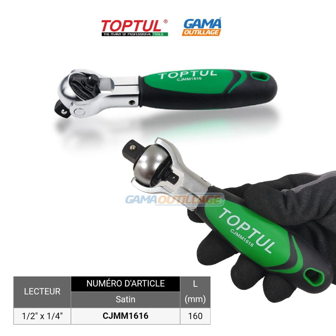 Le CLIQUET A TETE PIVOTANTE 1/4 1/2 du marque TOPTUL Algérie, est disponible chez GAMA outillage Algérie, au prix Algérie compétitif, avec livraison 58 wilaya.