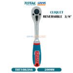 CLIQUET REVERSIBLE 3/8″ TOTAL, Poignée à cliquet réversible avec dégagement rapide, Le cliquet 3/8″ Poignée Plastique Total est un outil de qualité professionnelle qui est parfait pour les travaux de bricolage et de réparation. Il est fabriqué en acier Chrome vanadium.
