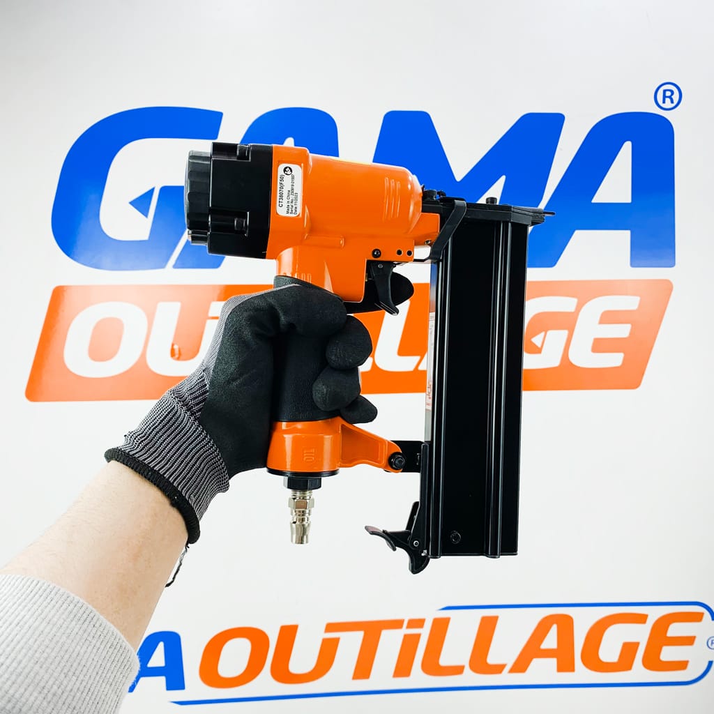 - Cette cloueuse est souvent utilisée dans des projets de menuiserie et de charpenterie pour fixer des moulures, des cadres, des plinthes, des garnitures et d’autres éléments décoratifs en bois.