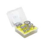 Chaque disque diamanté est monté sur une tige standard compatible avec la plupart des mini-outils rotatifs. Livré dans un boîtier rigide compact (107 × 90 × 55 mm), ce coffret garantit un rangement organisé et une protection optimale des accessoires.