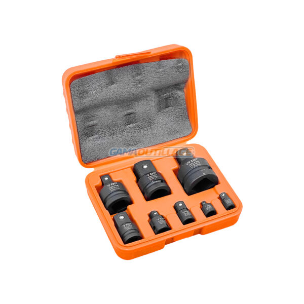 Coffret adaptateurs douilles à choc TOP HELPER 8 pièces. Acier Cr-Mo, compatibilité 1/4″ à 1″. Coffret rigide inclus. Chez GAMA OUTILLAGE.