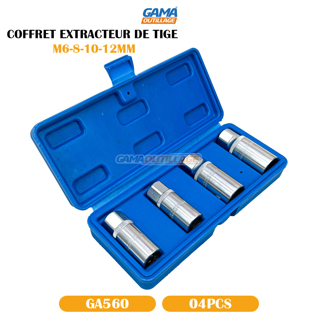 COFFRET EXTRACTEUR DE TIGE M6-8-10-12MM O4PCS DNM, est un ensemble d’outils utilisés pour retirer les tiges filetées cassées ou endommagées. Le coffret que vous mentionnez contient 4 pièces et est conçu pour les tiges de tailles M6, M8, M10 et M12.