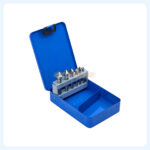 Chaque fraise est soigneusement rangée dans une boîte métallique compacte (152 × 110 × 33 mm), idéale pour le transport et le stockage sécurisé.