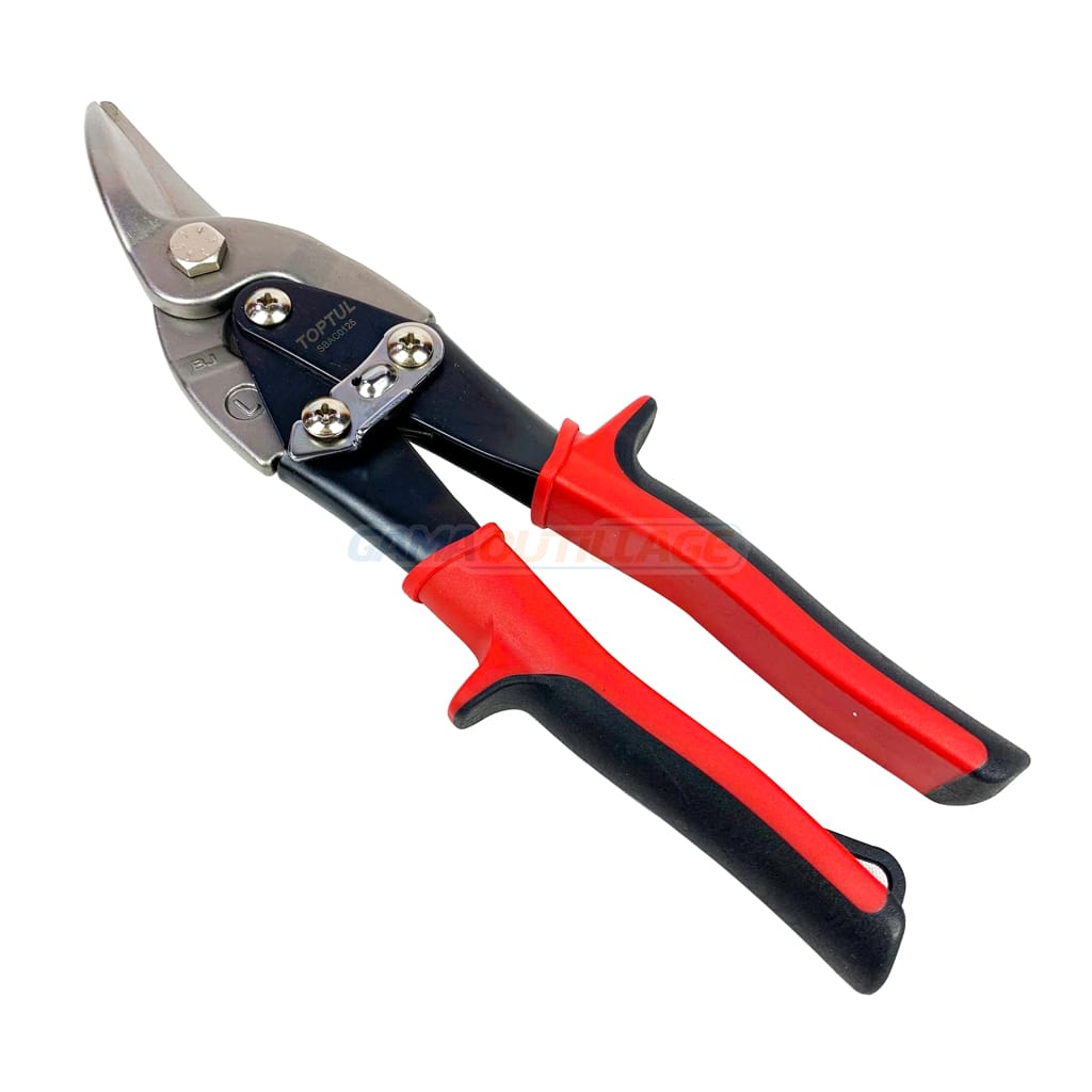 COUPE TOLE A GAUCHE TOPTUL Lames en acier allié au chrome-molybdène forgé. Arêtes de coupe trempées par induction HRC 60-62. Les mâchoires de coupe dentelées de précision.