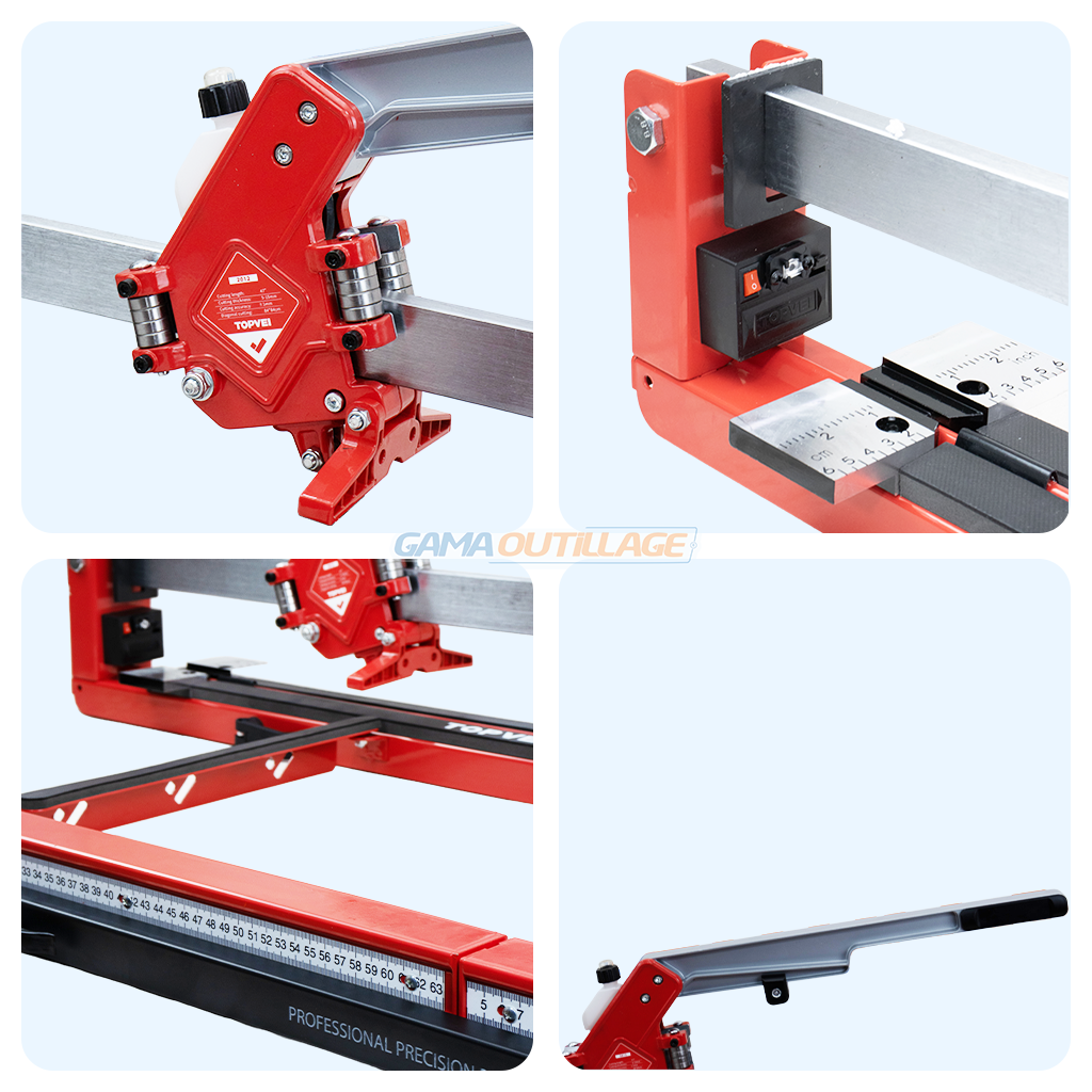 La coupeuse manuelle 1200 mm avec laser TOPV V-212 est un outil de coupe précis conçu pour les travaux de découpe de carreaux et de matériaux similaires.