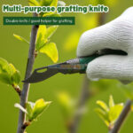 - Greffage et élagage Le couteau de pépinière jardin est très approprié pour le greffage et l’élagage. Si vous rencontrez des difficultés lors de l’élagage, vous pouvez piquer avec une pointe pointue. Le couteau de greffage pliant est un outil multifonctionnel. Il est utilisé pour élaguer les branches dans le jardin ou peler l’écorce.