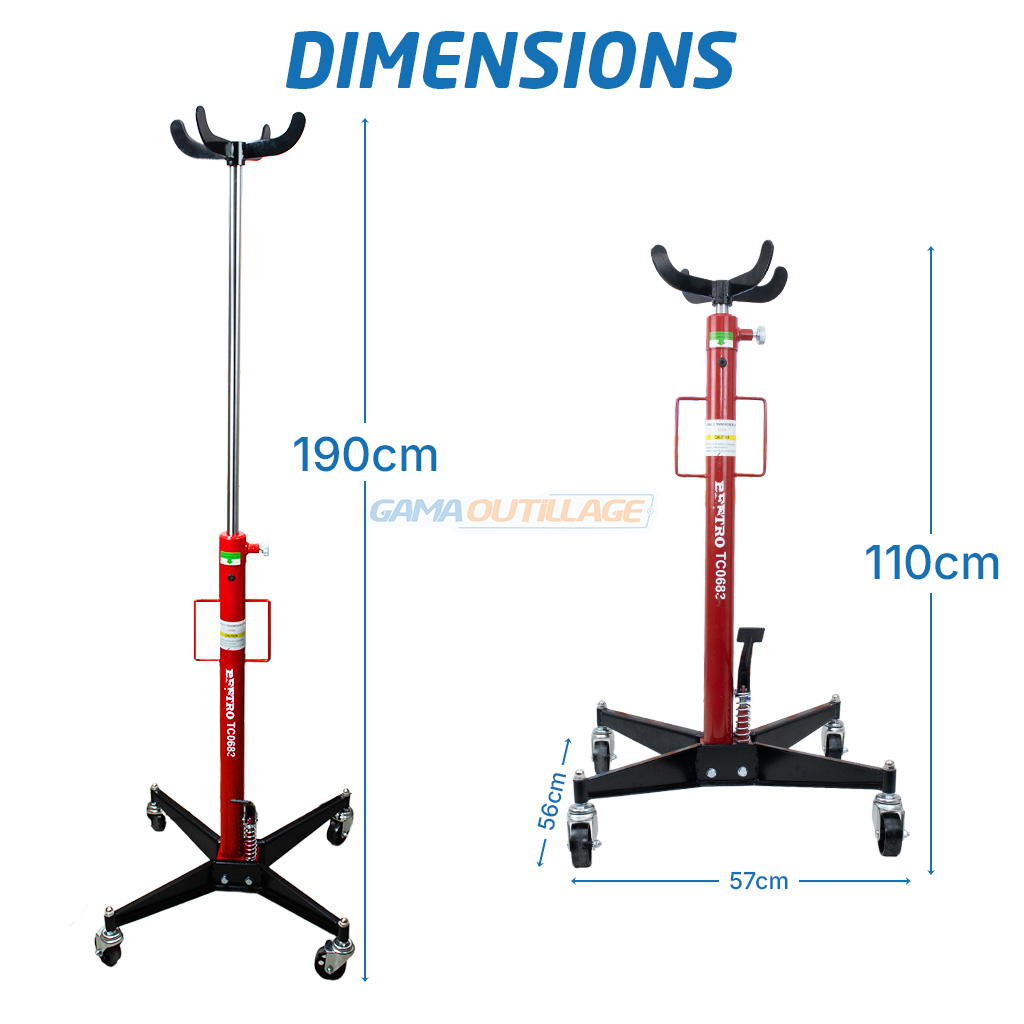 Cric boîte 0.5 ton BEETRO TC0683 conçu pour lever et maintenir une boîte de vitesses. Hauteur réglable, roulettes pivotantes, outil idéal pour mécaniciens.