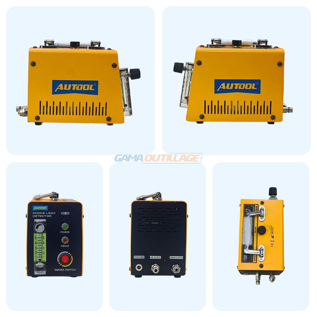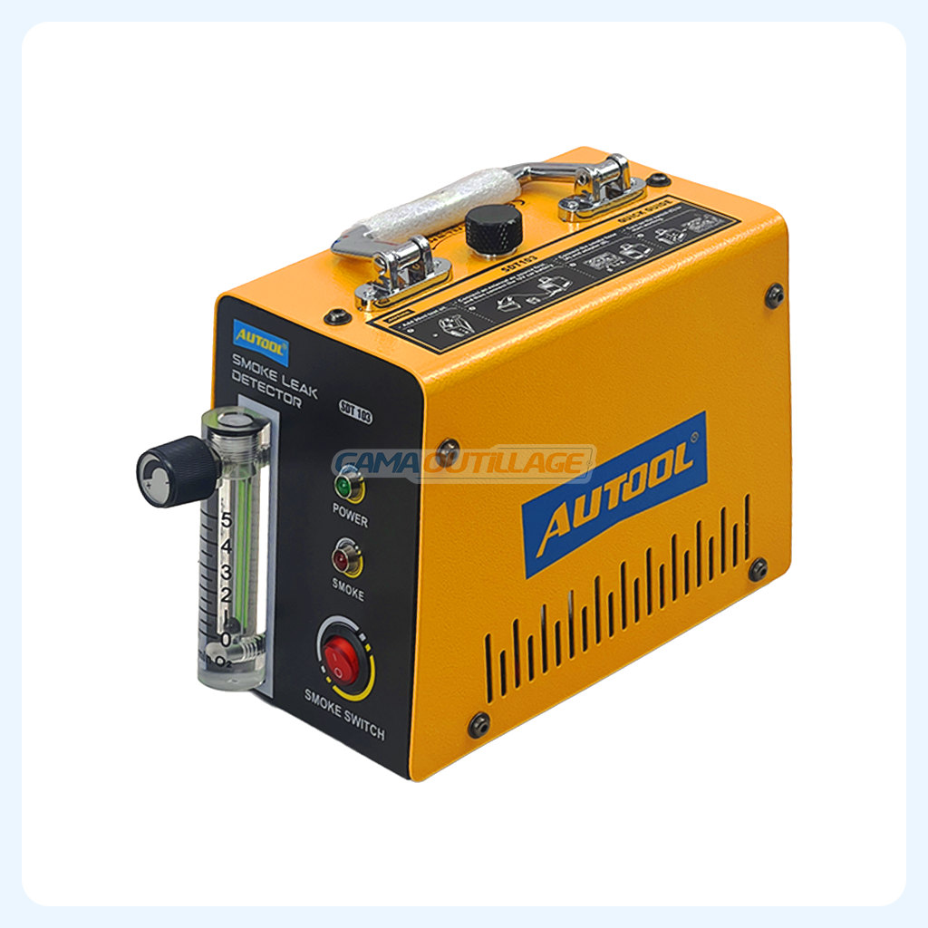 Le détecteur de fuite automobile par fumée AUTOOL SDT 103 permet de localiser facilement les micro-fuites dans les systèmes EVAP, admission, échappement et circuits sous pression. Compact, fiable et livré avec tous les accessoires nécessaires.