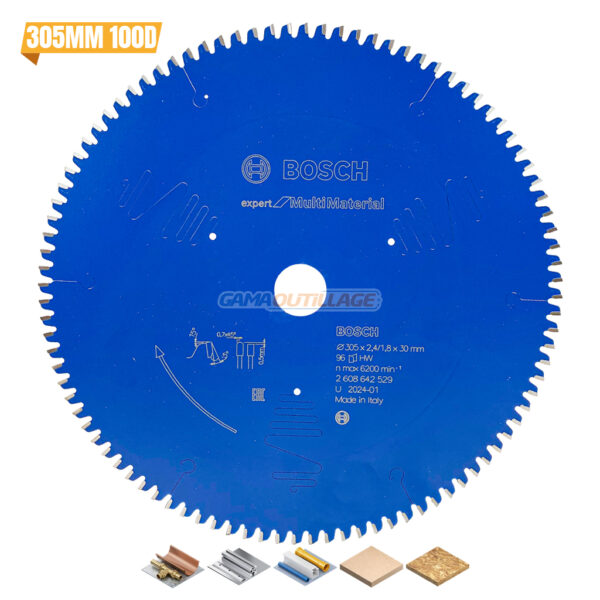 DISQUE MULTI MATERIAL 305MM 100 DENTS EXPERT BOSCH, Ce type de disque est conçu pour offrir une grande polyvalence dans les travaux de coupe. Le diamètre de 305 mm (12 pouces)