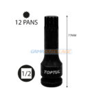 GAMAOUTILLAGE vous propose une DOUILLE 1/2 12PT MAL M 16 A CHOC TOPTUL, est un douille à chocs à embout cannelé DR 1/2″ sont des outils essentiels pour les professionnels et les bricoleurs exigeants.