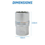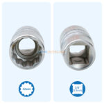 Douille courte 3/8” AKRAFT 13 mm, profil 12 pans, pratique pour cliquet et interventions mécaniques.