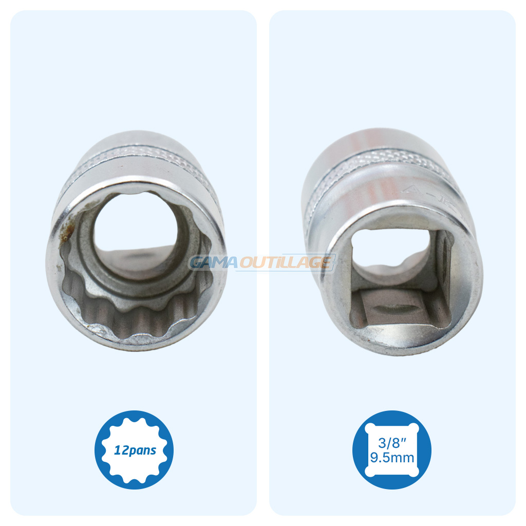 - Entraînement 3/8″ : compatible avec cliquets, rallonges et accessoires 3/8