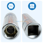 Description GénéraleLa douille à bougie N°14 1/2 TOPTUL BAAT1614 est spécialement conçue pour le démontage et le montage des bougies d’allumage. Compatible avec un carré d’entraînement 1/2” (12,7 mm), elle offre une excellente prise et une manipulation sécurisée grâce à son système magnétique interne. Fabriquée en acier haute résistance avec finition chromée, cette douille longue garantit robustesse, précision et protection contre la corrosion. Son format profond permet d’atteindre facilement les bougies situées en profondeur dans la culasse. Caractéristiques Techniques