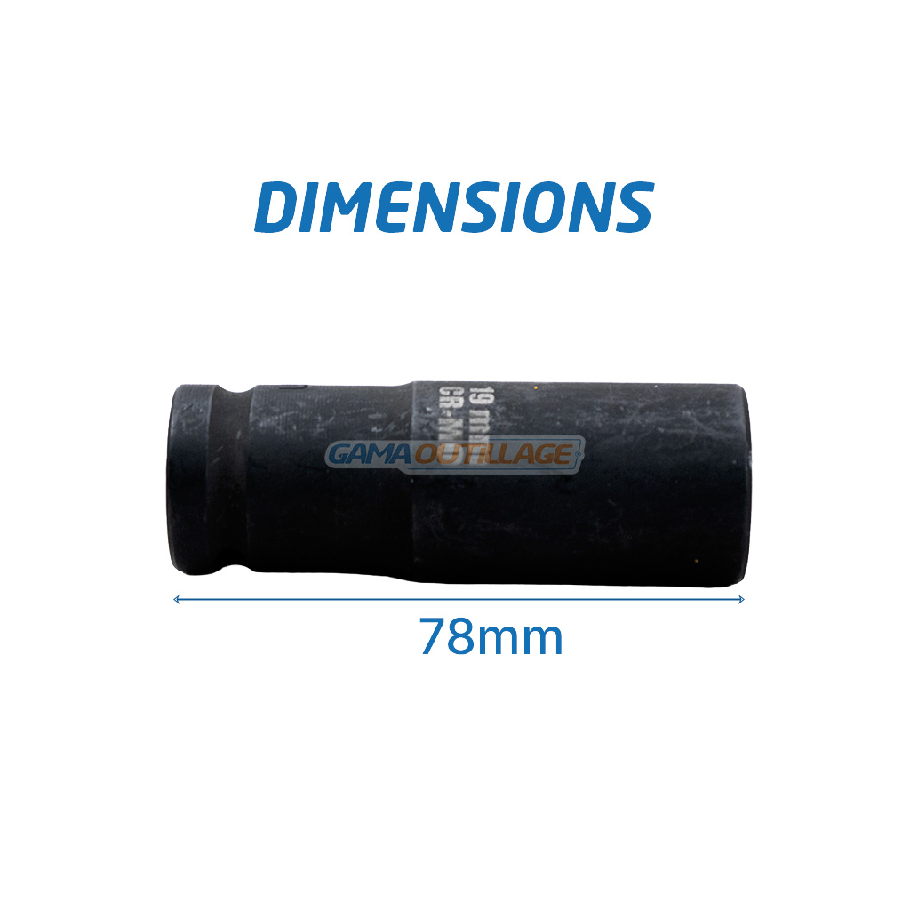 | Format long de 78mm idéal pour atteindre les écrous de roues profonds ou les goujons longs |