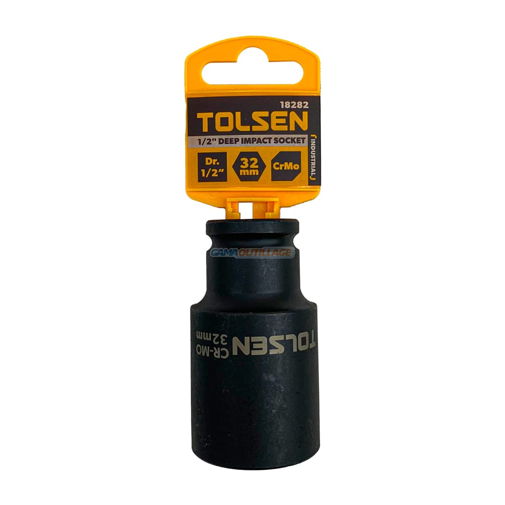 GAMAOUTILLAGE vous propose une DOUILLE N° 32 1/2 6PANS LONGUE A CHOC TOLSEN, est un douille à impact profonde 1/2″ Tolsen est un outil de qualité professionnelle fabriqué en acier chromolybdène traité thermiquement. Elle est conçue pour résister aux forces d’impact intenses générées par les clés à chocs pneumatiques, électriques ou manuelles.