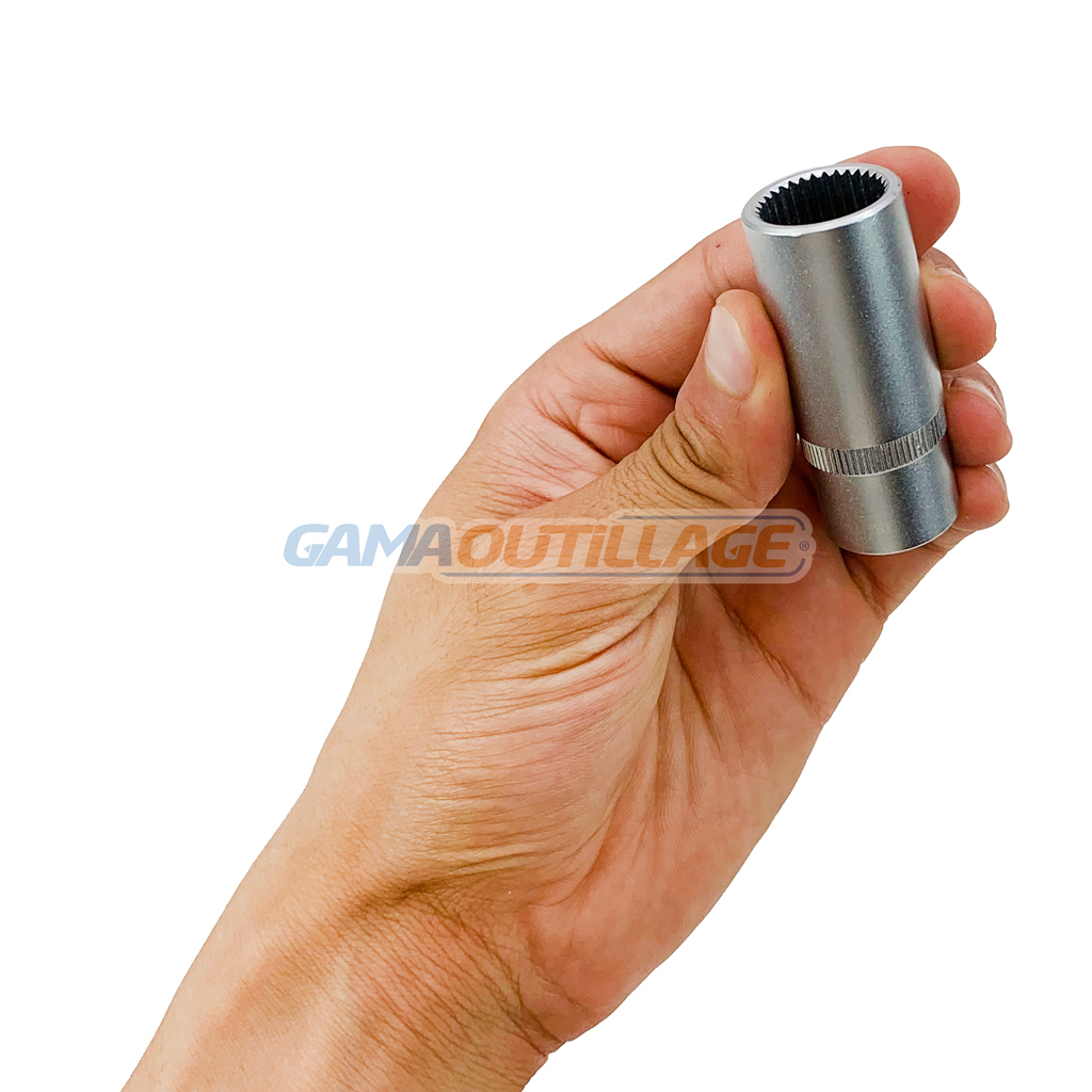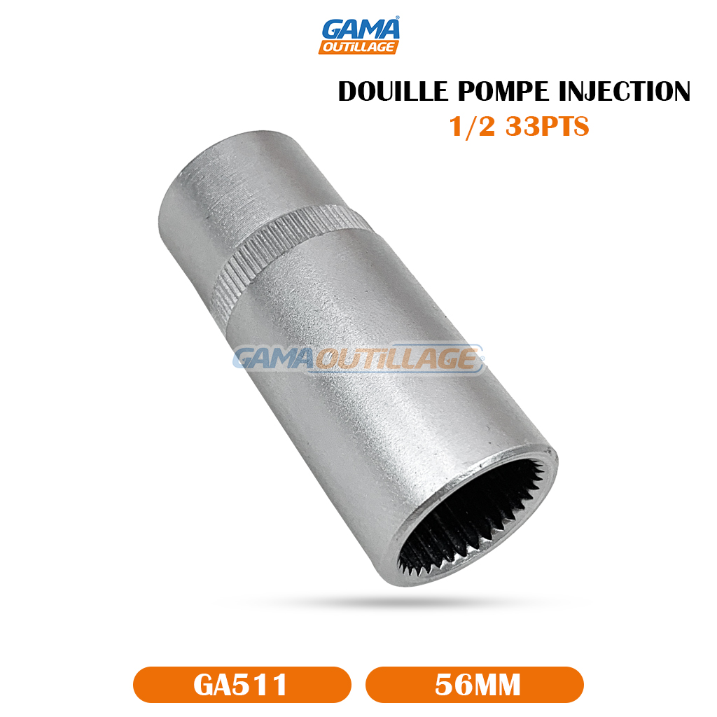 DOUILLE POMPE INJECTION 1/2 33PTS MERCEDES, est un outil spécialement conçu pour travailler sur les pompes d’injection de certains modèles de véhicules Mercedes-Benz. Elle est généralement utilisée pour serrer ou desserrer des éléments de la pompe, comme la poignée de la soupape de pression.