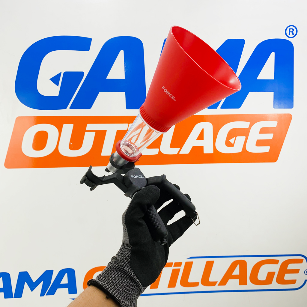 GAMAOUTILLAGE vous propose une ENTONNOIR A HUILE FORCE, Ce type d’entonnoir est le plus courant et convient à la plupart des huiles et des véhicules. Il est généralement en plastique ou en métal et possède un bec verseur flexible pour un remplissage précis.