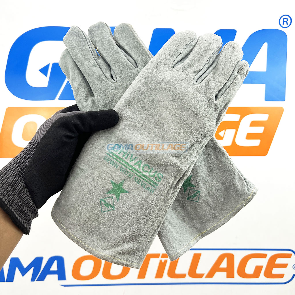 Gants anti-chaleur CHIVACUS GA767 en cuir épais avec coutures Kevlar®. Protection optimale pour soudure, forge et travaux thermiques. Haute résistance et confort durable.